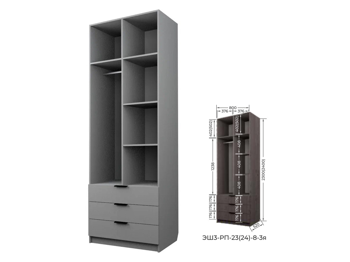 Комплект: ЭШ3-РП-23-8-3я, Шкаф с 3 ящиками + два ЗС-23-3я,Зеркало для шкафов ЭШ 2300 мм