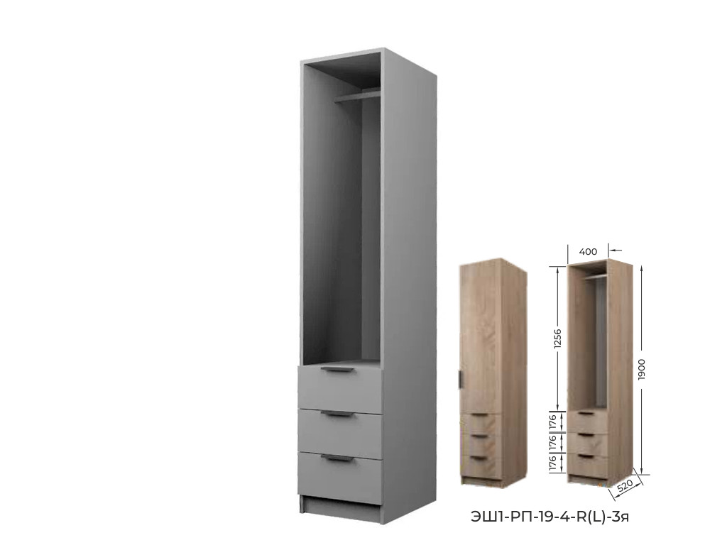 Комплект: ЭШ1-РП-19-4-R-3я,Шкаф с 3 ящиками + ЗС-19-3я,Зеркало для шкафов ЭШ 1900 мм