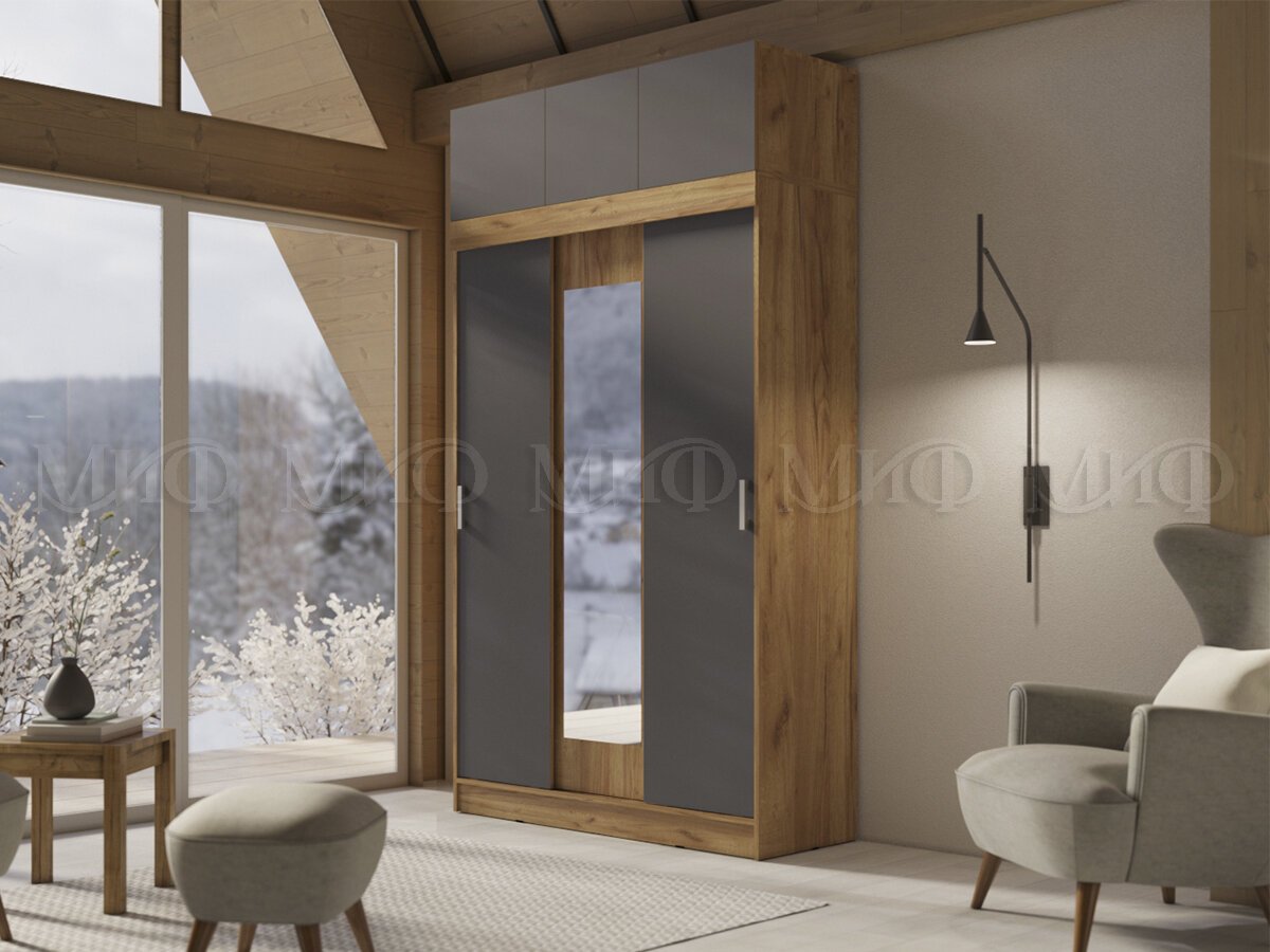 - Шкаф с антресолью Бася/Роджина Графит/Дуб крафт