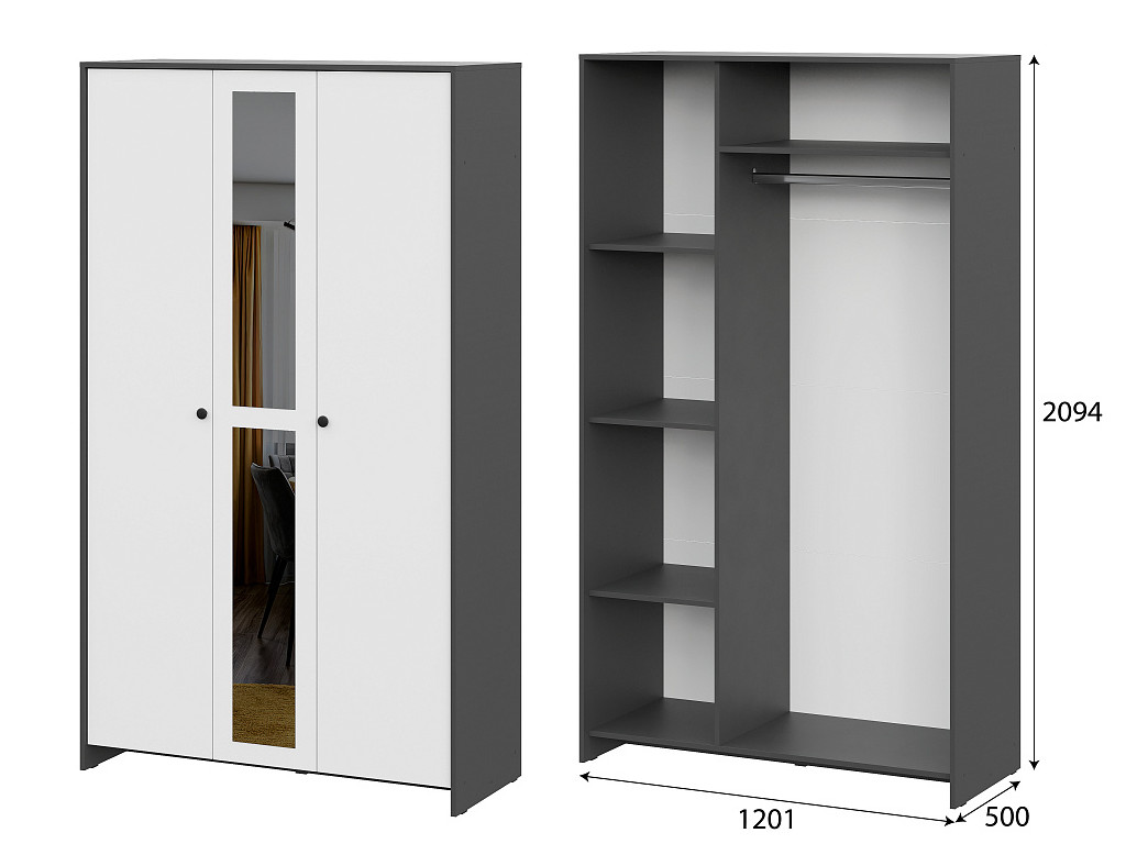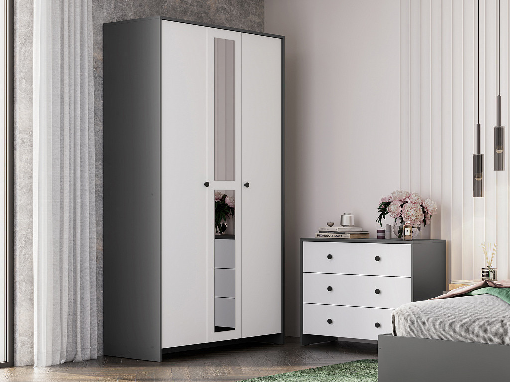 - Шкаф трехстворчатый Дольче Графит/Белый
