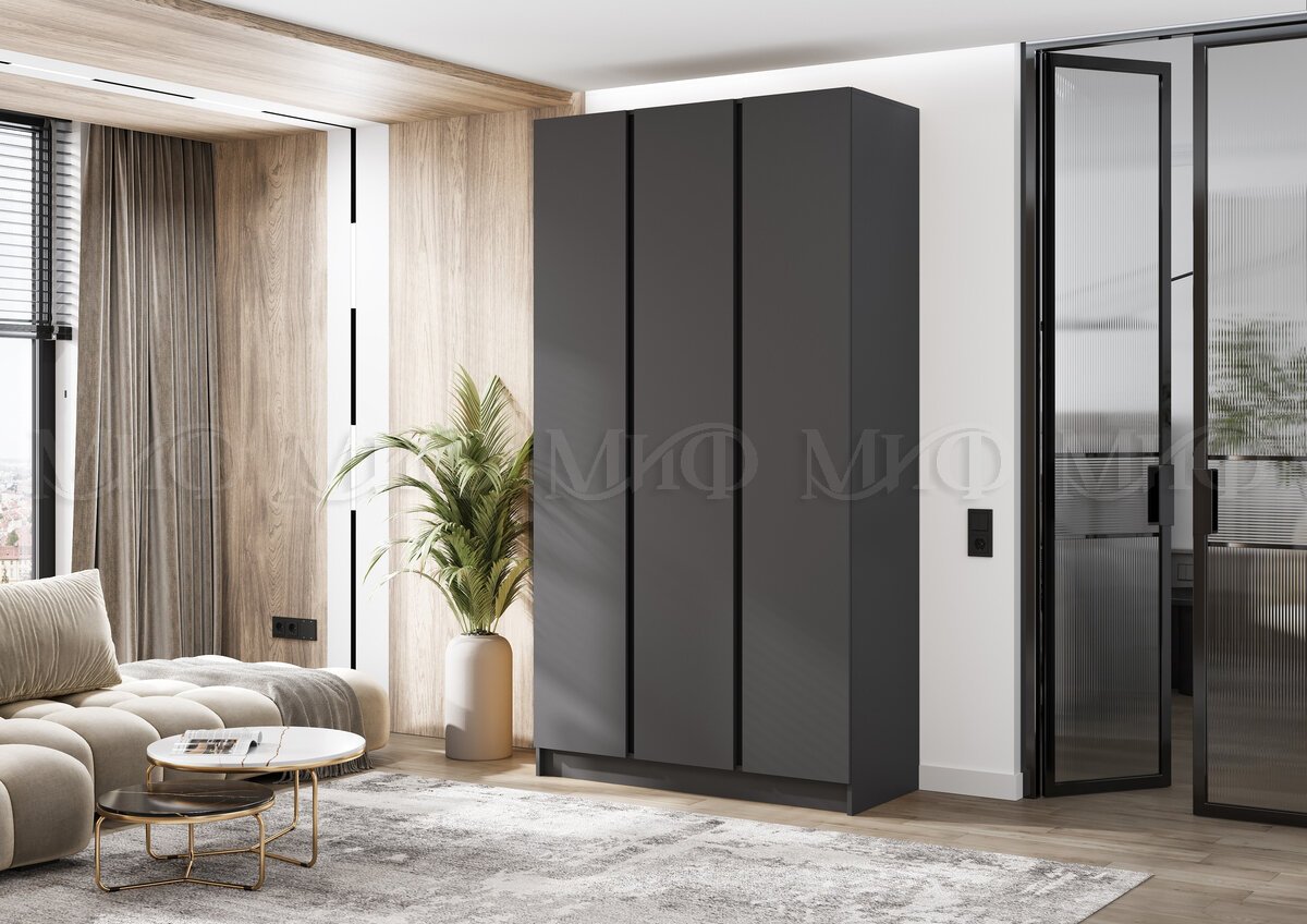 - Шкаф трехстворчатый Келвин (1200) Графит-вставка черная