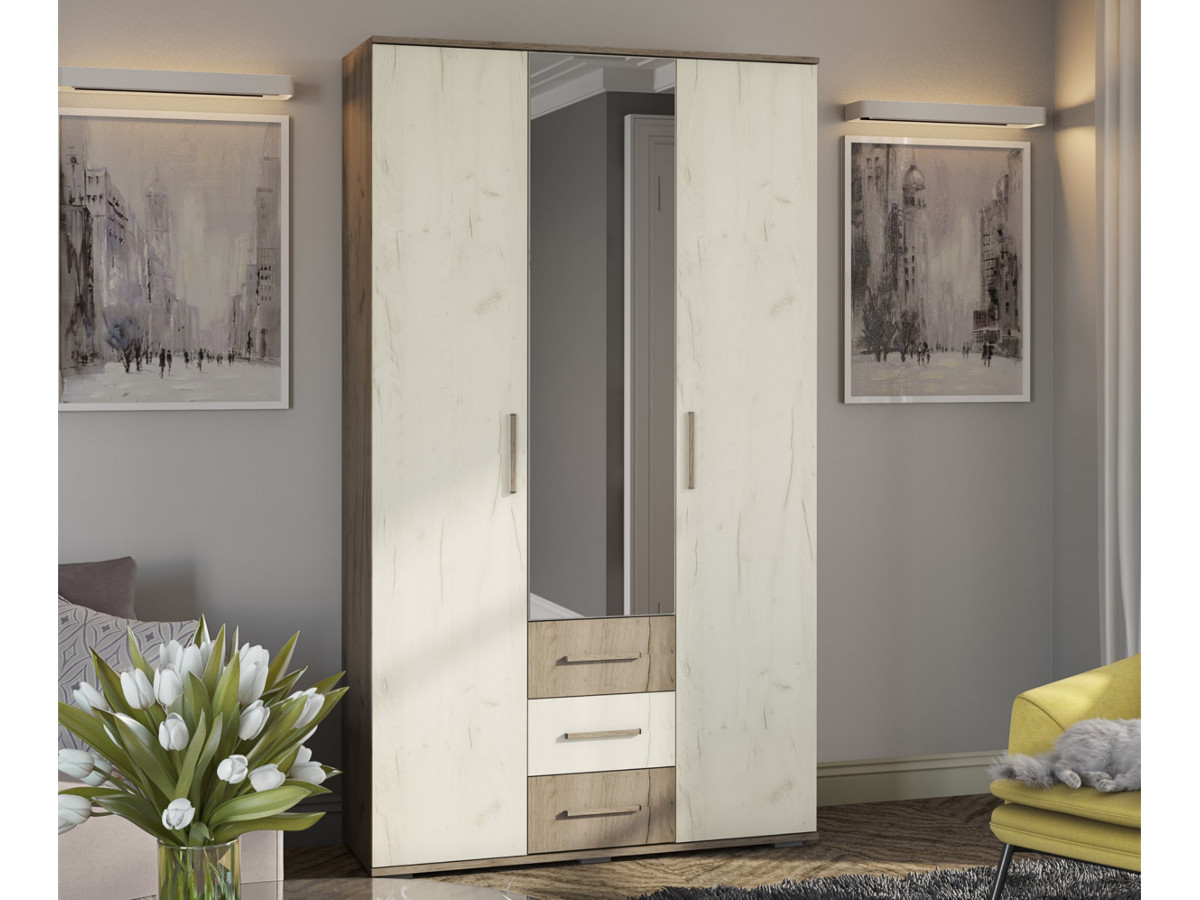 Шкаф трехстворчатый Парма дуб крафт серый-дуб крафт белый