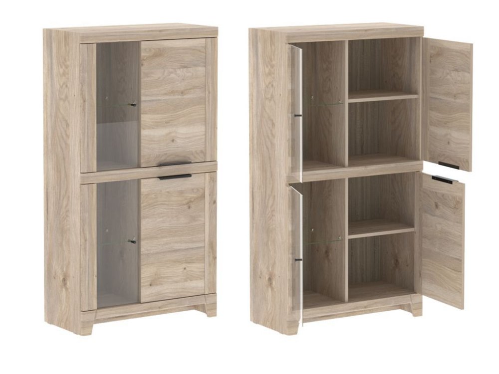 Пенал низкий Юта укомплектован полками: 2- стекло (максимальная нагрузка на полку стекло - 5кг), 2 - ЛДСП (максимальная нагрузка на полку - 15кг). Материал 2-х фасадов - стекло (планибель).