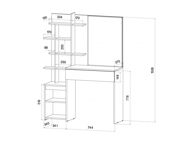 - Стол туалетный Ленора Дуб вотан/Графит