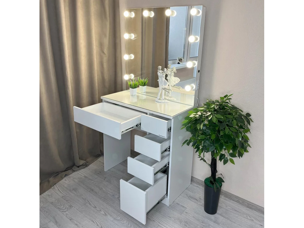 - Туалетный стол с 5 вместительными полновыкатными ящиками без ручек.